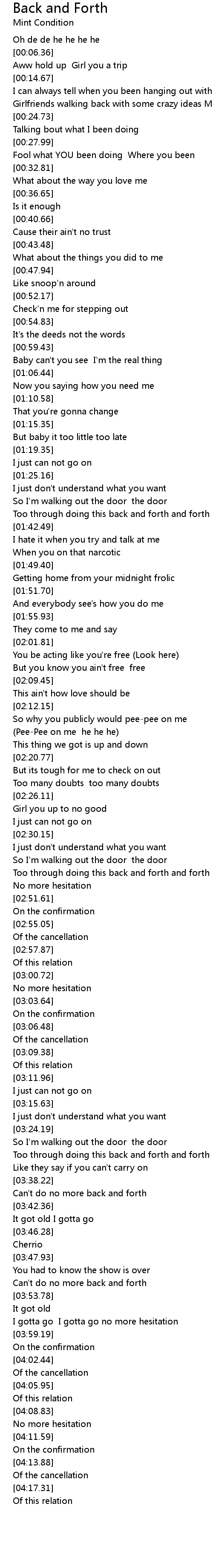 Can't do no more back and forth |