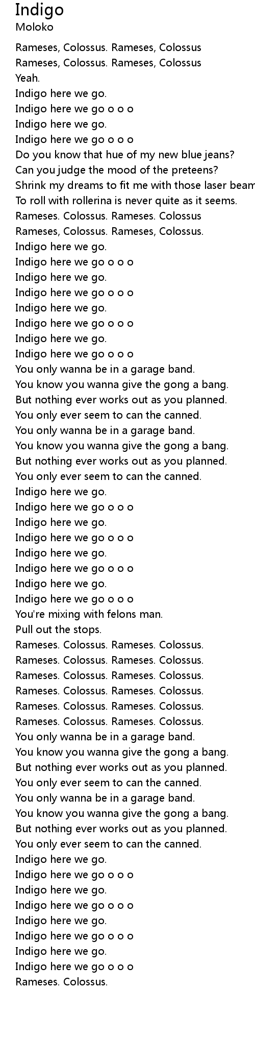 Indigo here we go o o o |