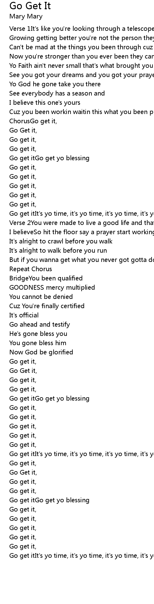 | Go get itIt's yo time, it's yo time, it's yo time, it's yo time |