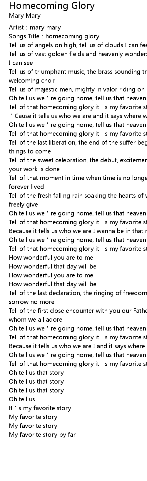 | [04:18.95] | Tell of that homecoming glory it s my favorite story by far |