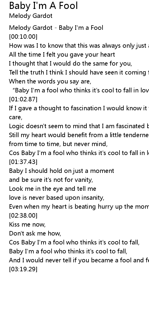 | [00:55.43] | " Baby I' m a fool who thinks it' s cool to fall in love" |