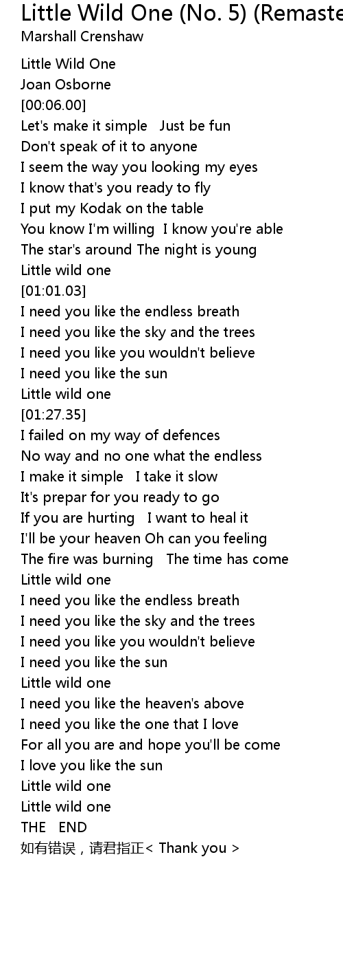 | [01:23.35] | Little wild one |