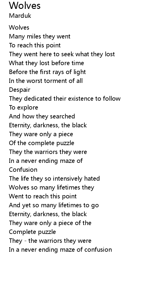 | Wolves so many lifetimes they | |