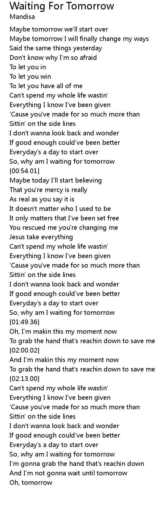 So, why am I waiting for tomorrow |