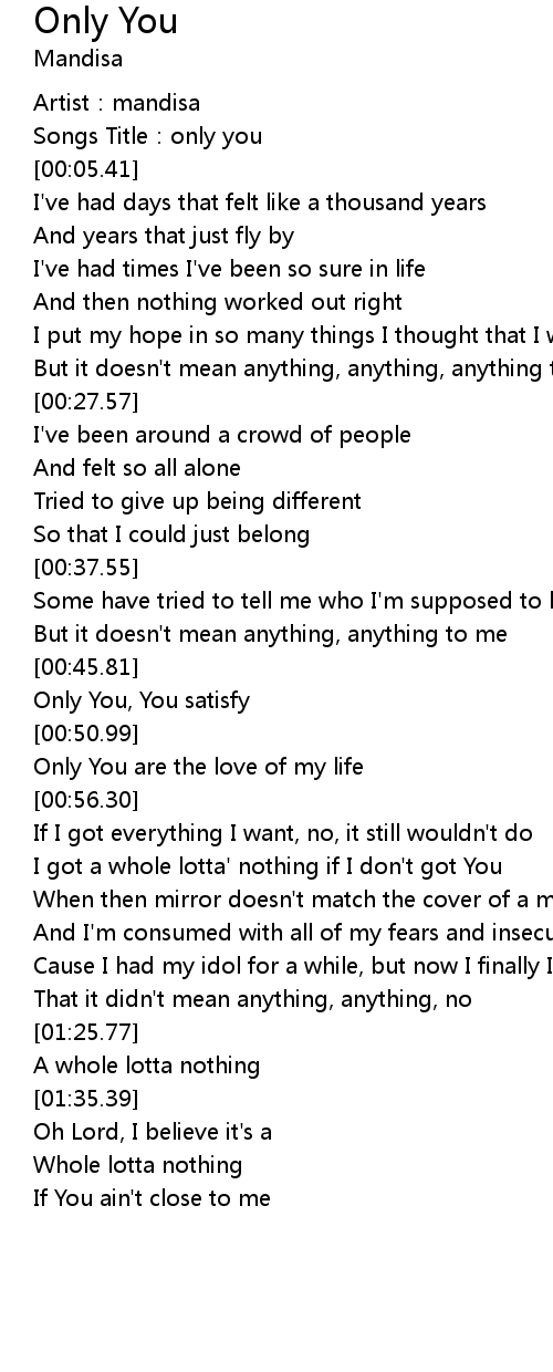 | [01:01.38] | I got a whole lotta' nothing if I don' t got You |