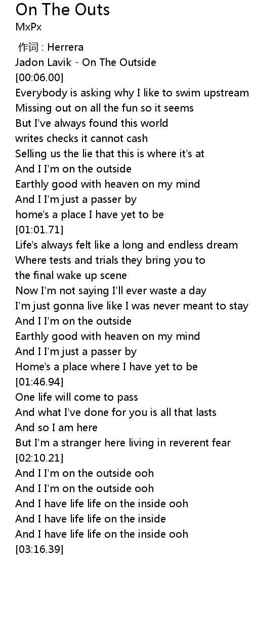 | [00:00.00] | Jadon Lavik - On The Outside |