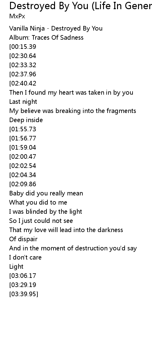 Destroyed By You (Life In General Album Version) Lyrics