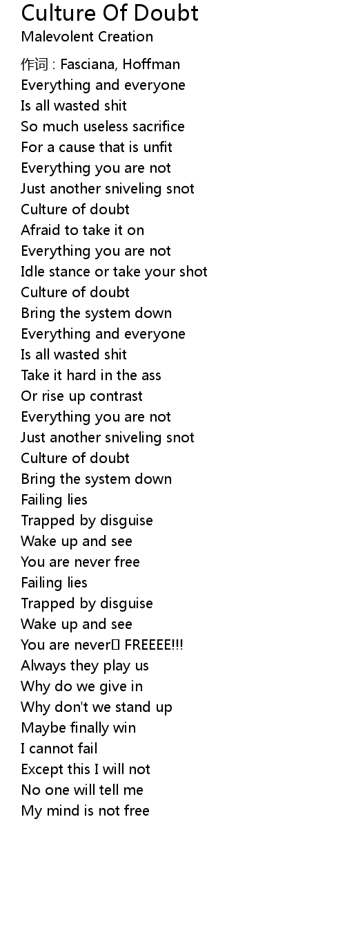 | Song | Culture Of Doubt |