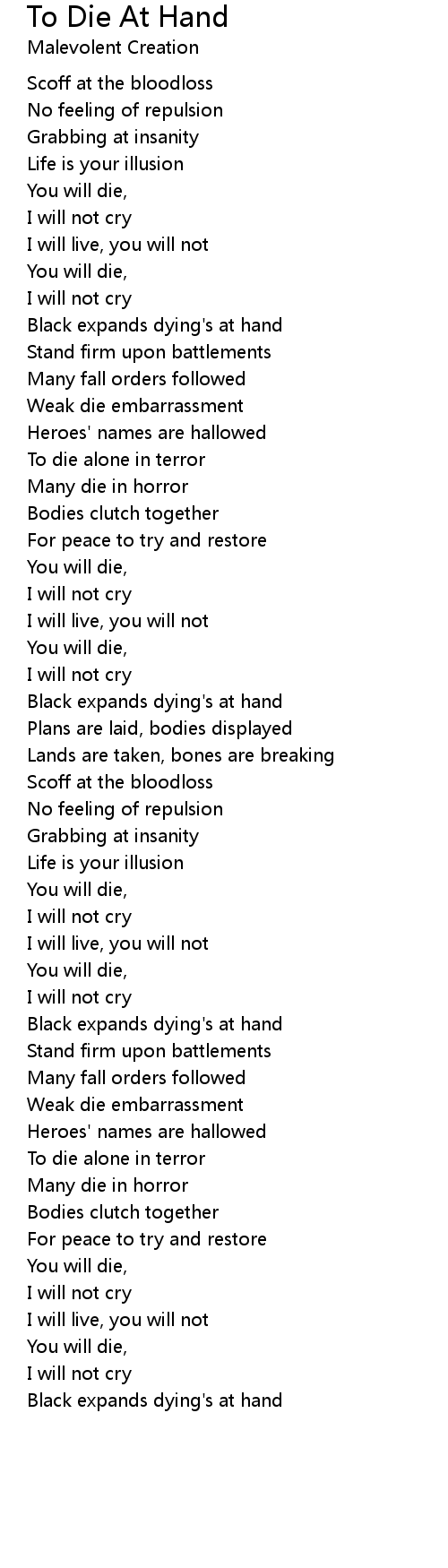 You will die, |