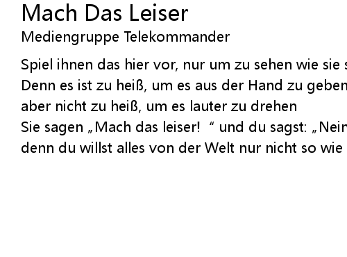 | Sie sagen Mach das leiser!" und du sagst: Nein!" | |