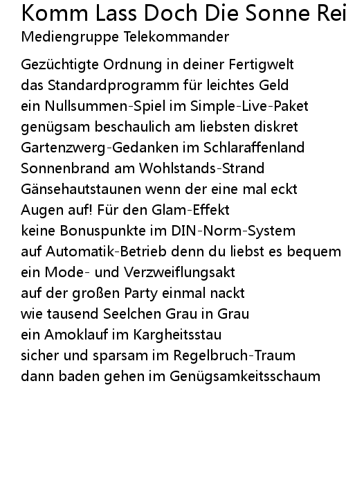 | auf Automatik-Betrieb denn du liebst es bequem | |