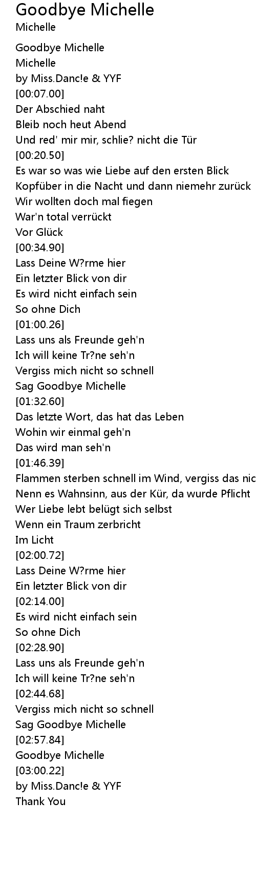 | [00:14.12] | Und red' mir mir, schlie? nicht die Tür |