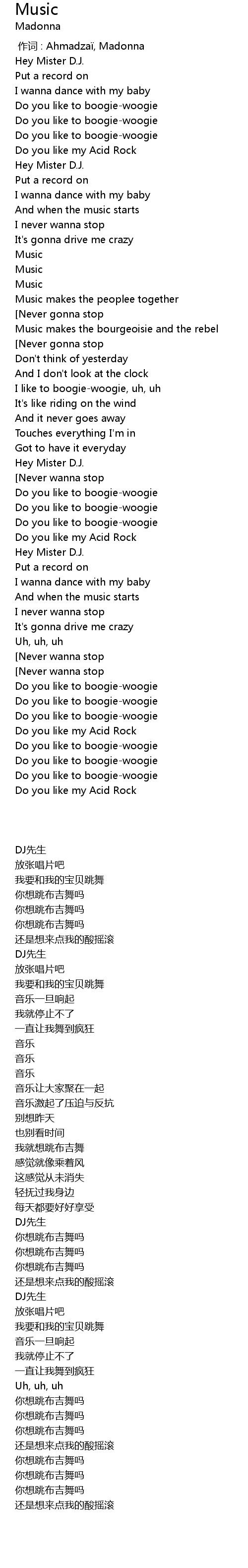 | [00:24.000] | Do you like to boogiewoogie |
