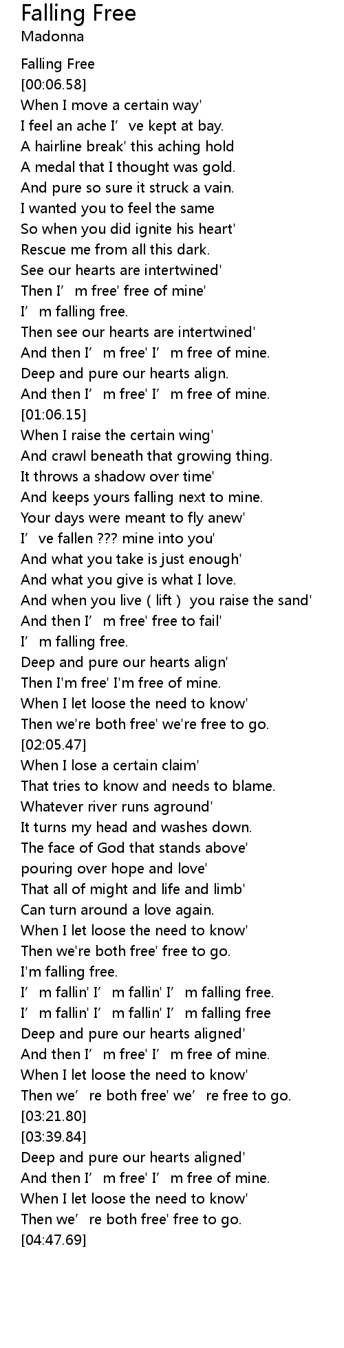| [02:55.30] | I' m fallin' I' m fallin' I' m falling free |