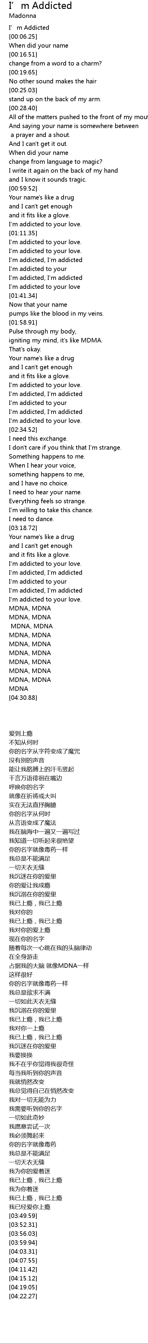 | [01:31.41] | I'm addicted, I'm addicted |