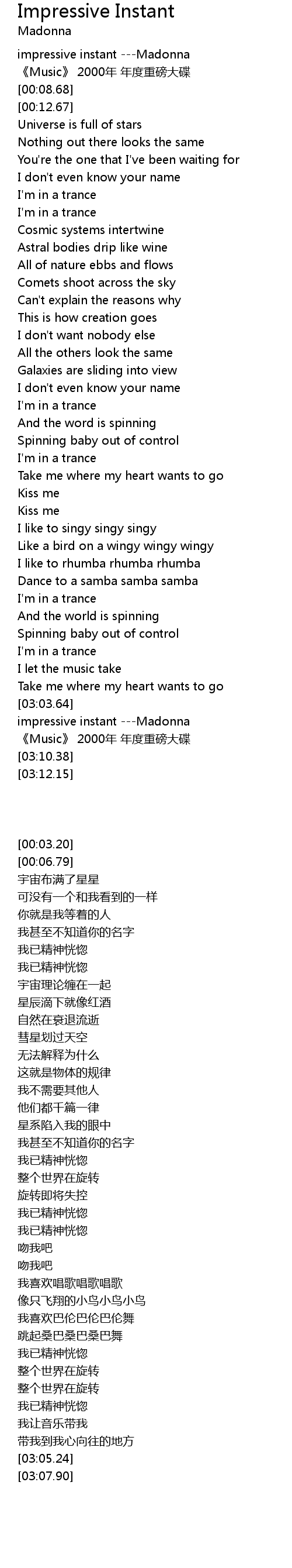 | [00:03.20] | impressive instant ---Madonna |