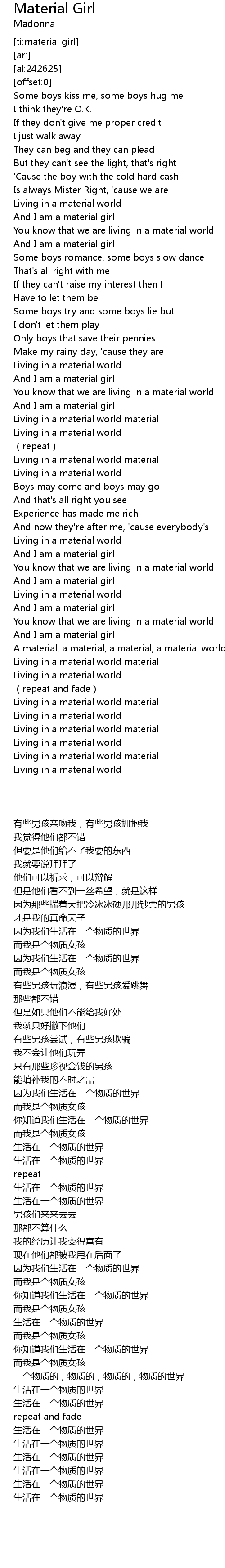 | [00:30.87] | Some boys kiss me, some boys hug me |