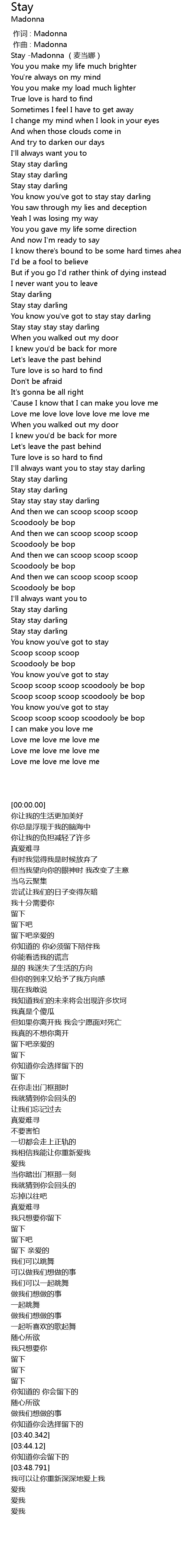 | [00:00.00] | Stay -Madonna (麦当娜) |