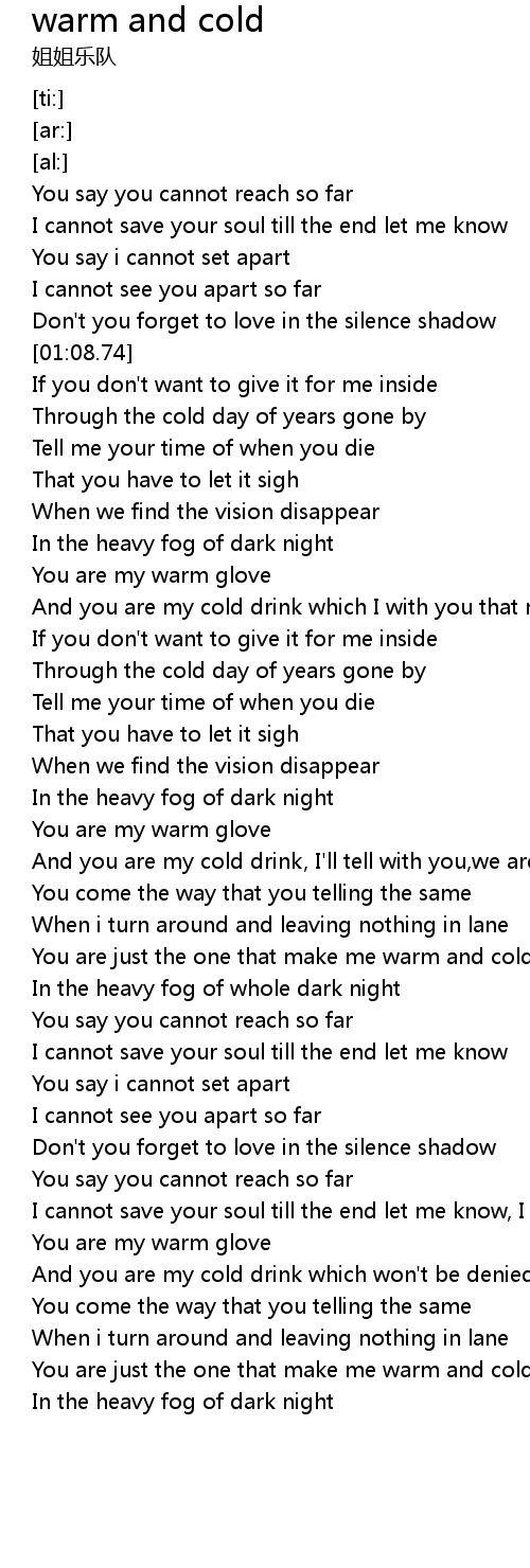 | [06:15.72] | You are just the one that make me warm and cold |