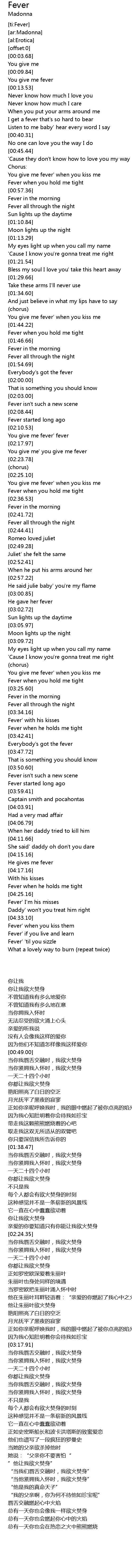 | [02:34.35] | Fever when you hold me tight |