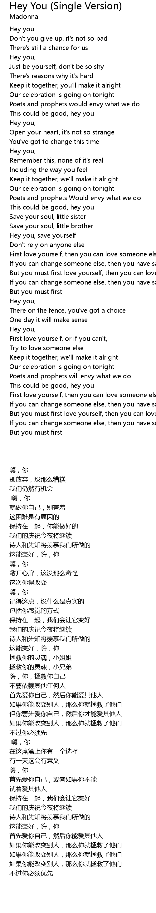 | [02:02.00] | But you must first love yourself, then you can love someone else |
