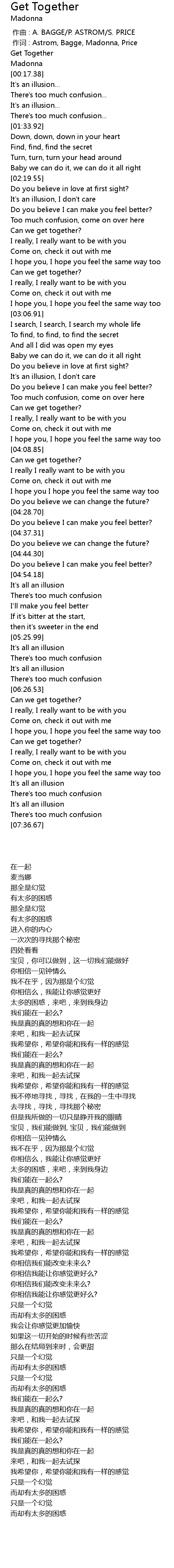 | [00:01.00] | 作词 : Astrom, Bagge, Madonna, Price |