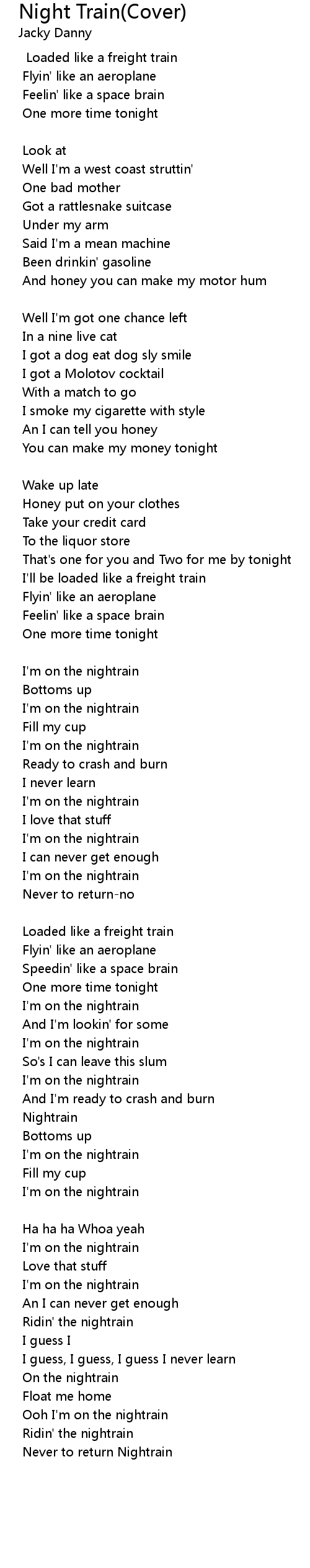 Ooh I'm on the nightrain |
