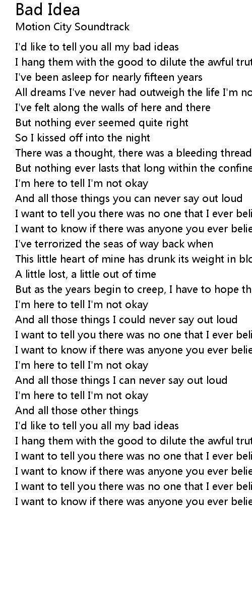 I'd like to tell you all my bad ideas |