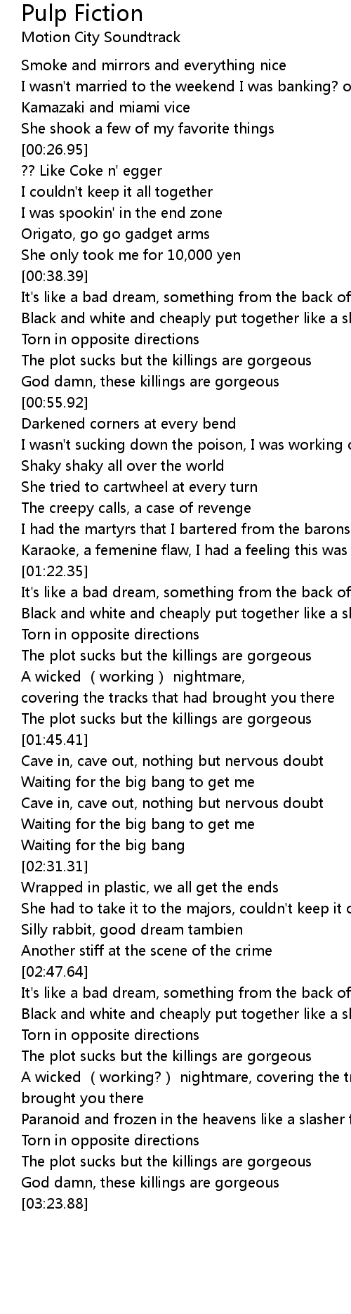 | Song | Pulp Fiction |