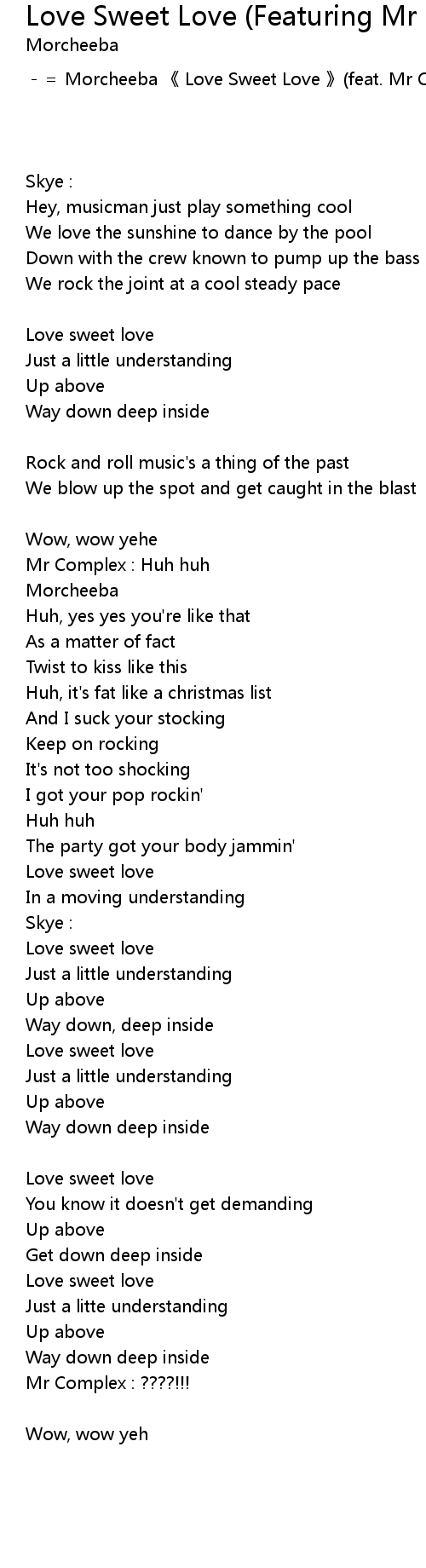 | Morcheeba Love Sweet Love feat. Mr Complex | |
