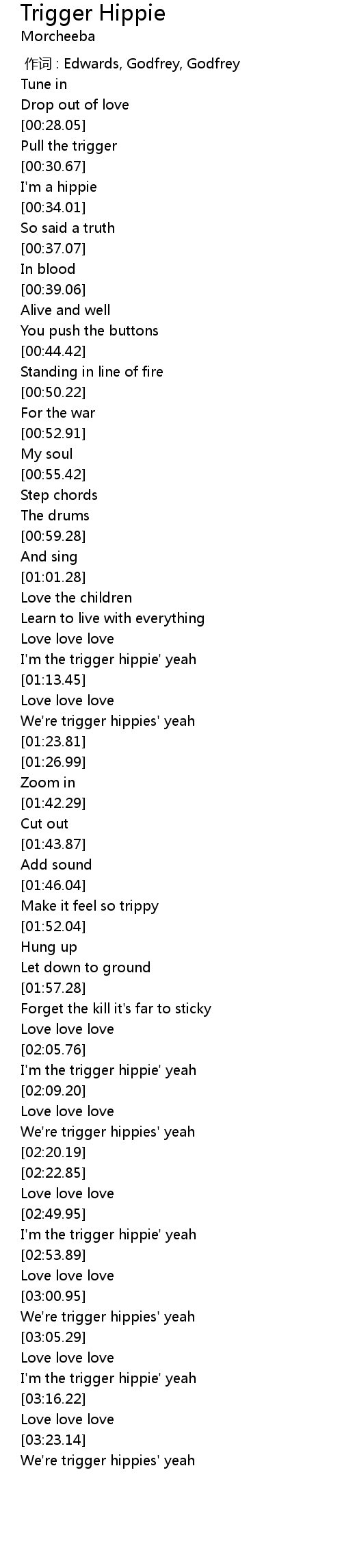 | [03:12.97] | I'm the trigger hippie' yeah |