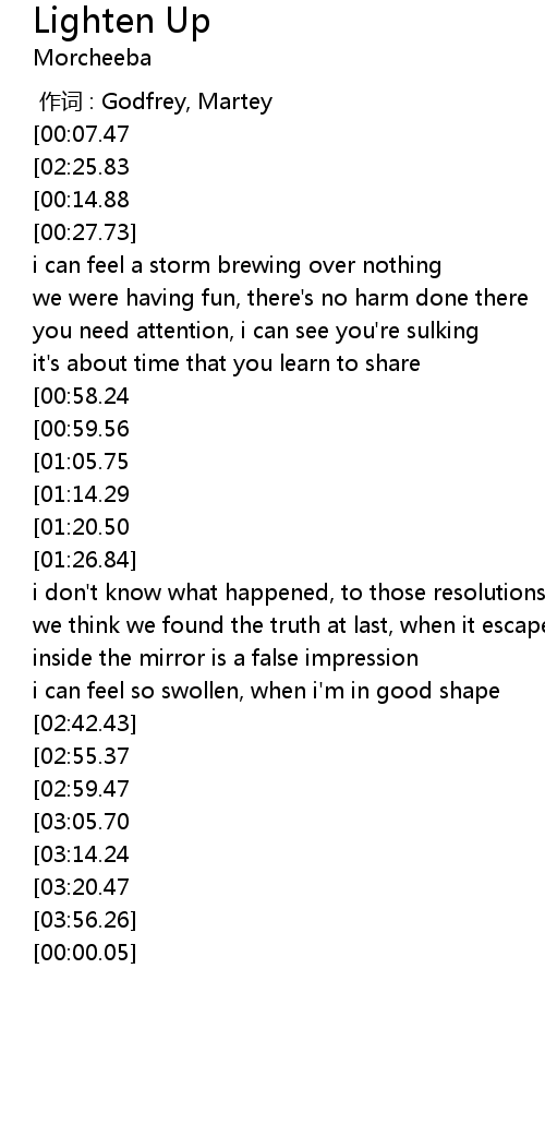 | [02:27.70][00:07.47] | morcheeba lighten up |