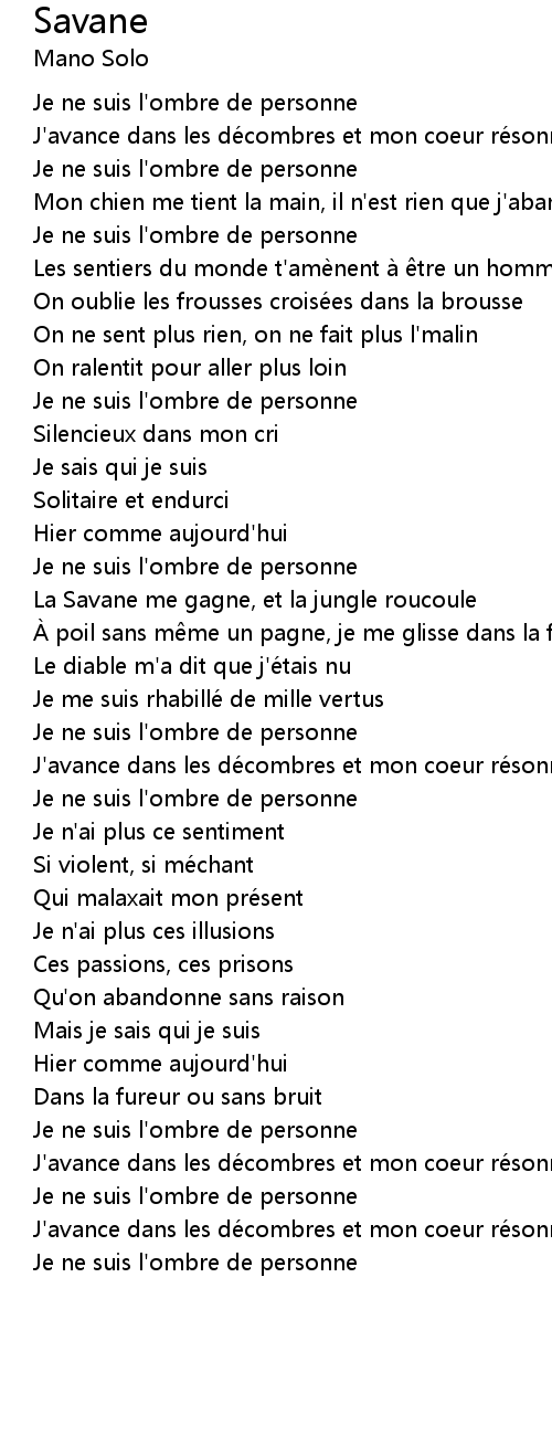 | J' avance dans les dé combres et mon coeur ré sonne | |