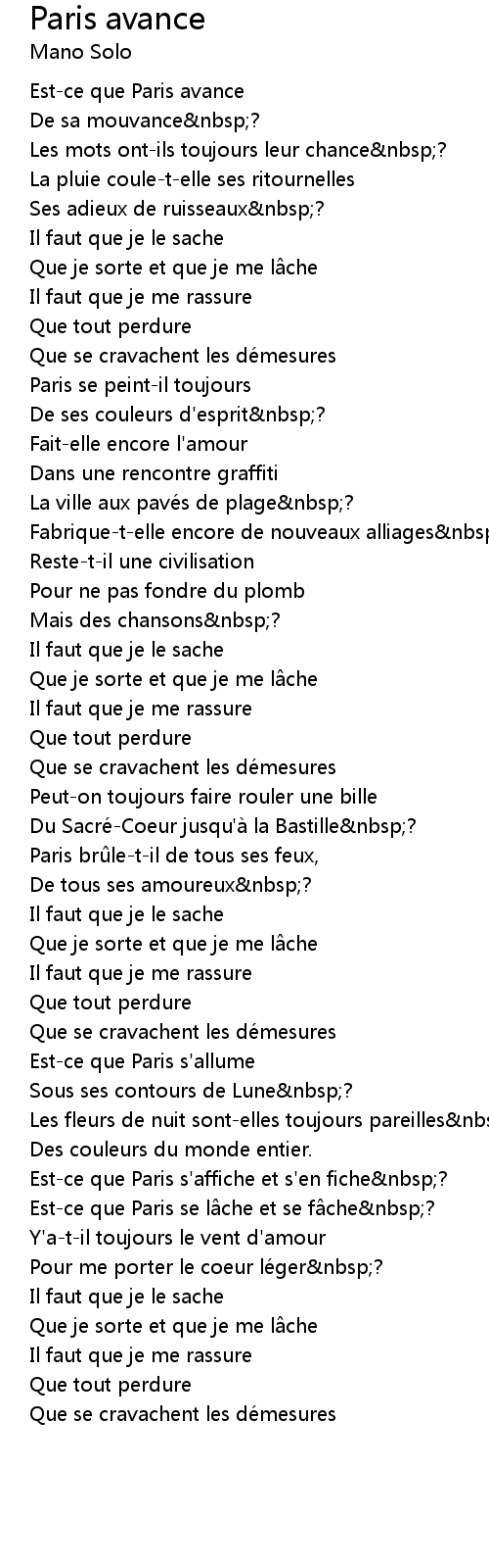 | Song | Paris avance |