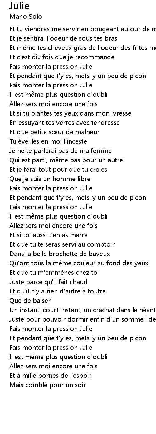 | Et m me tes cheveux gras de l' odeur des frites me feront r ver | |
