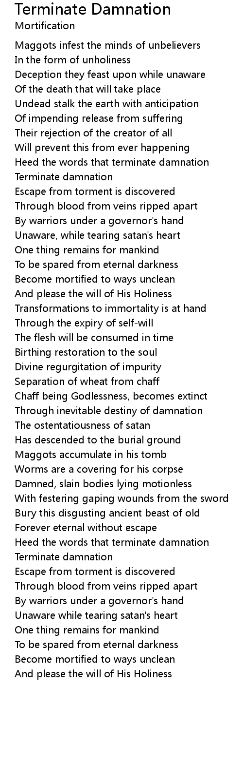 Heed the words that terminate damnation |