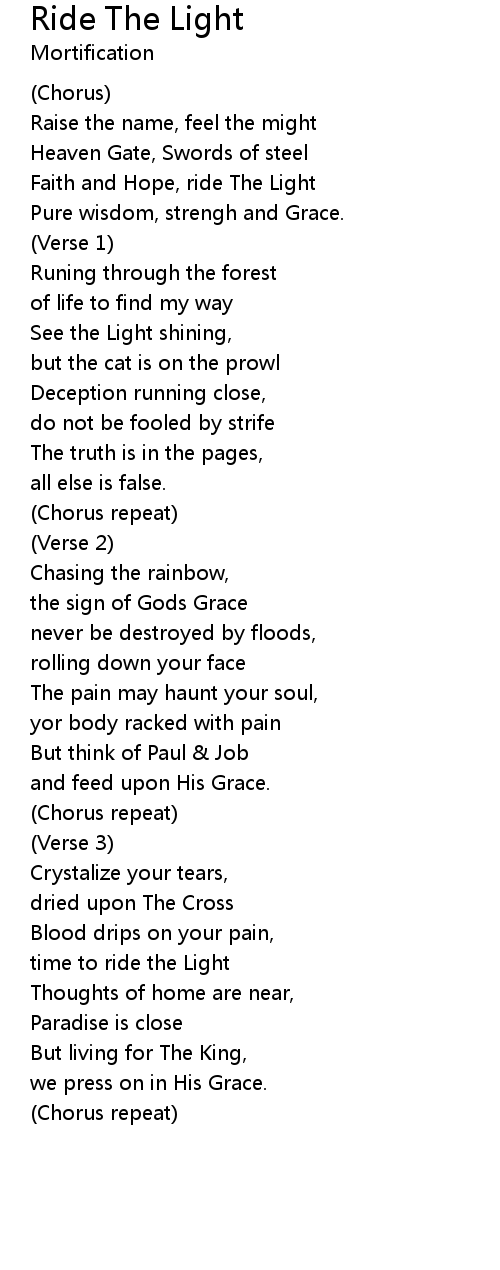 Faith and Hope, ride The Light |