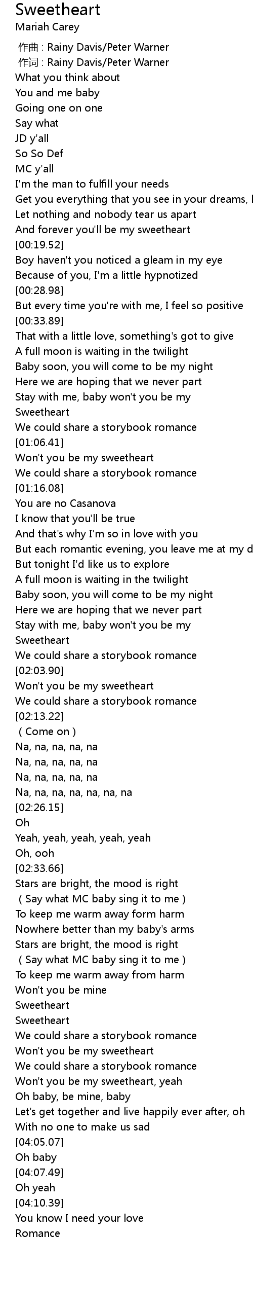 | [03:48.24] | Won't you be my sweetheart, yeah |