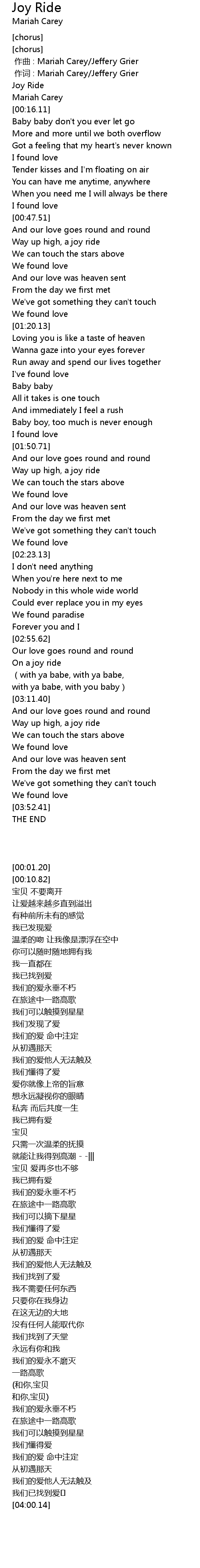 | [00:00.340] | 作词 : Mariah Carey/Jeffery Grier |