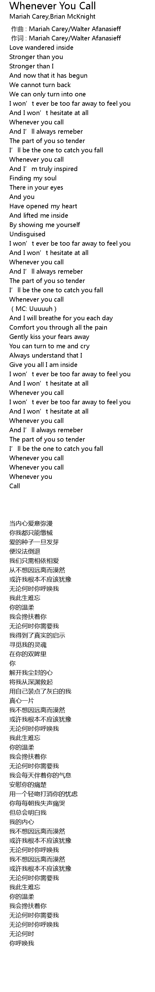 | [00:01.00] | 作词 : Mariah Carey/Walter Afanasieff |