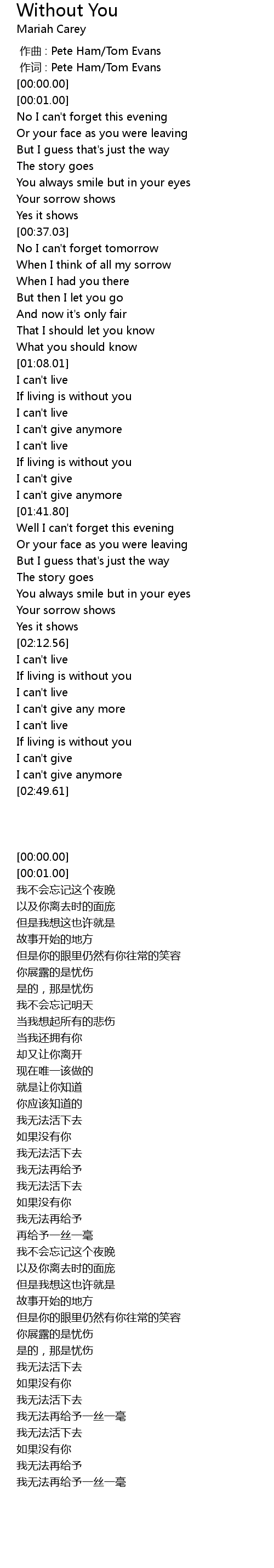 | [01:37.62] | I can' t give anymore |