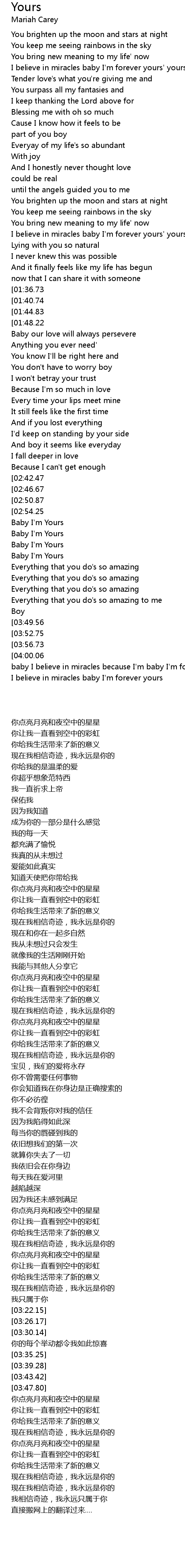 baby I believe in miracles because I'm baby I'm forever yours. |