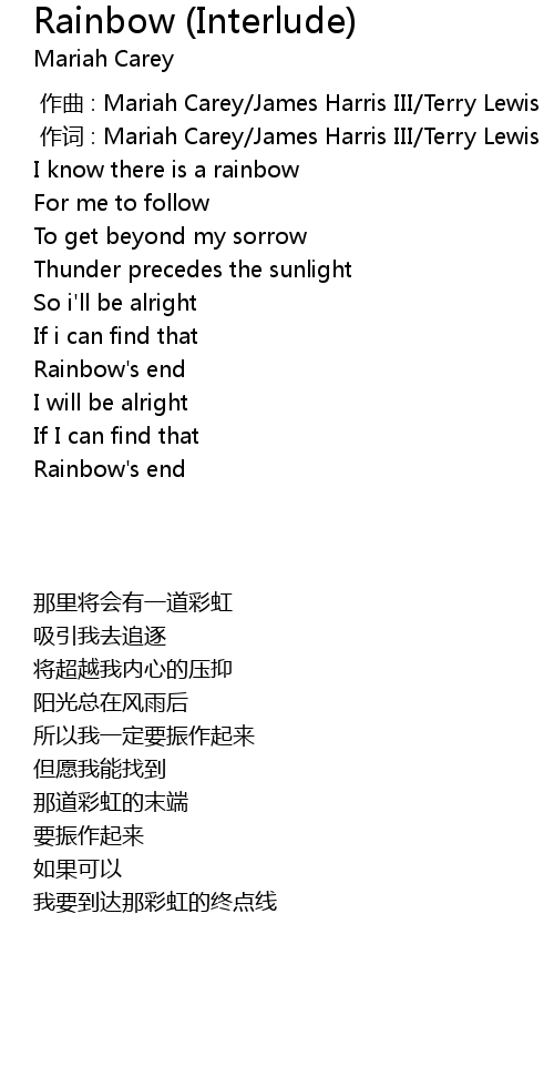 | [00:43.51] | Rainbow' s end |
