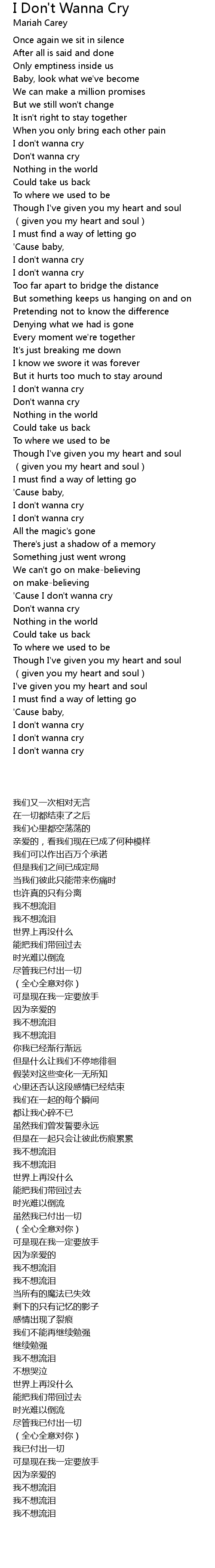 | [03:36.470] | ' Cause I don' t wanna cry |