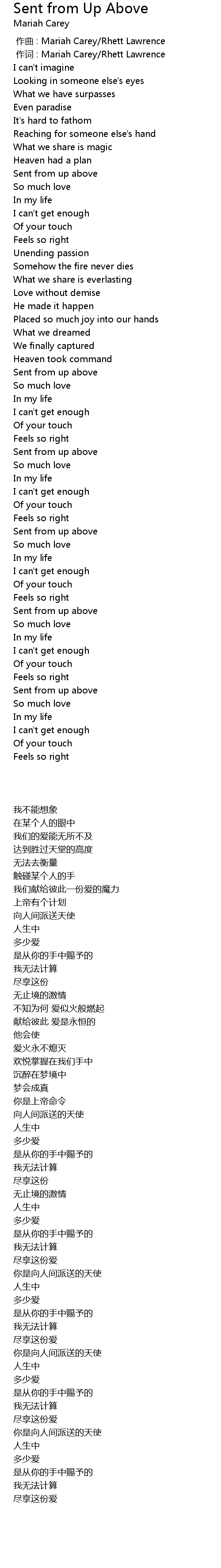 | [00:01.00] | 作词 : Mariah Carey/Rhett Lawrence |
