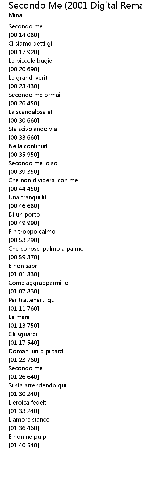 | [01:25.620] | Secondo me |