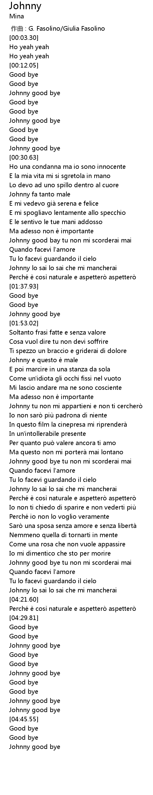 | [02:56.63] | Johnny good bye tu non mi scorderai mai |