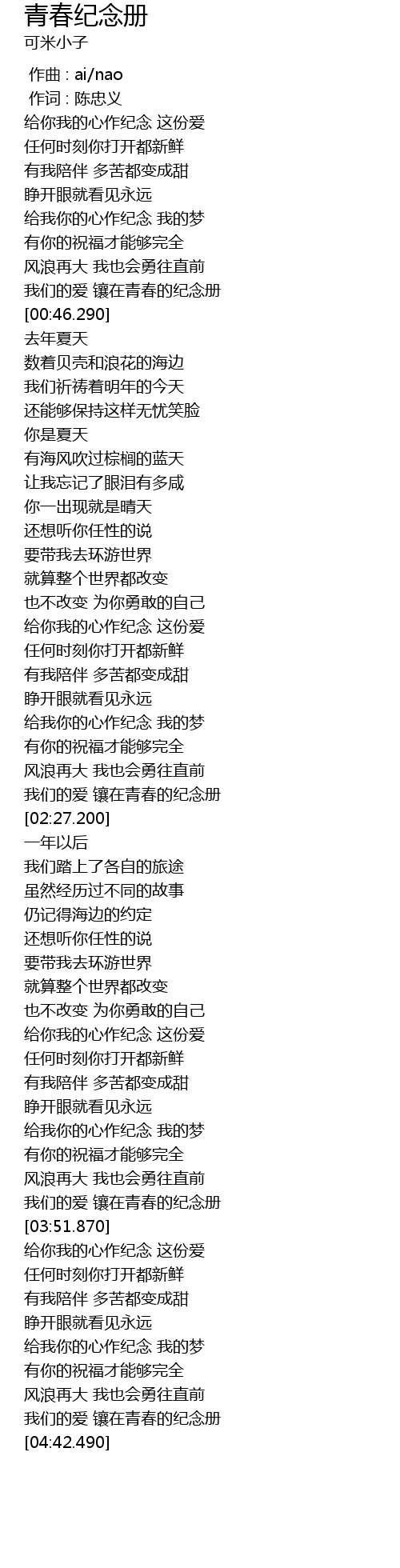 | [02:20.910] | 我们的爱 镶在青春的纪念册 |