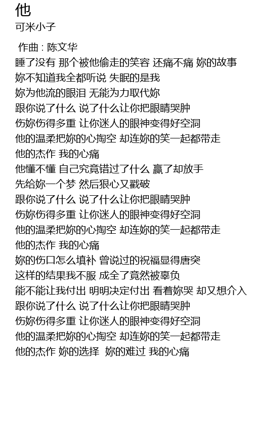 | [02:33.190] | gēn nǐ shuō le shén me shuō le shén me ràng nǐ bǎ yǎn jīng kū zhǒng |