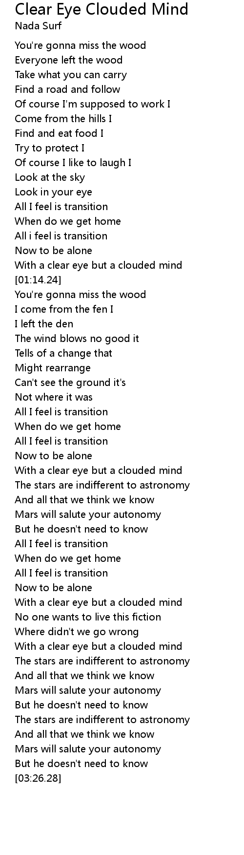 With a clear eye but a clouded mind |